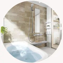 ユニットバスの実物を、各ショールームで確認しながら細かに仕様を決めます。商品の仕様次第で、金額に多少の増額が出る場合もございます。